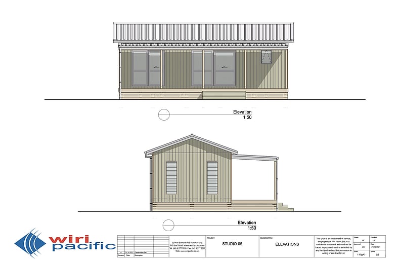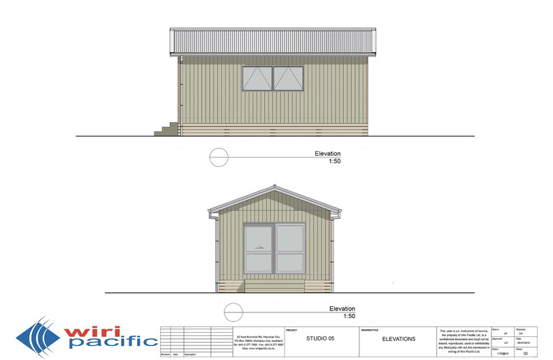 Below are our Studio kitset plans, elevations and artist impressions. Please note that we have an onsite architectural draughtsman who, for a small fee, can assist in modifying our Studio plans.